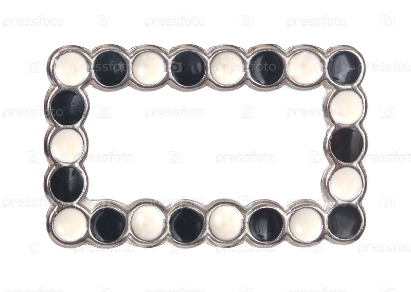 Квадратная металлическая пряжка ремня с черно-белым эмалевым вкладом, изолированным на белом фоне, готовый к вырезу