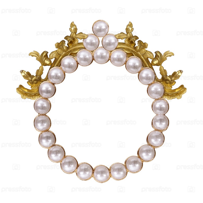 Жемчужная и золотая рама для картин, зеркал или изолированных фотографий на белом фоне