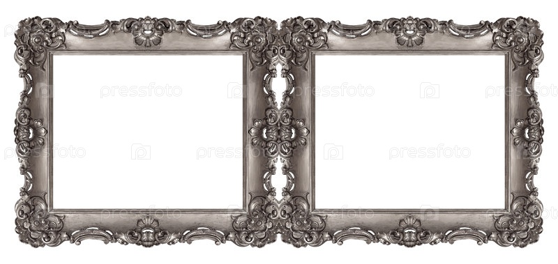 Двойная серебряная рама (диптих) для картин, зеркал или фотографий, изолированных на белом фоне