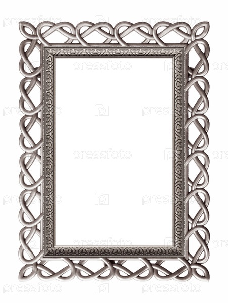 Серебряный каркас с сердцем для картин, зеркал или фотографии, изолированной на белом фоне