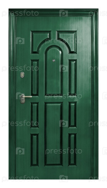 Модель входной металлической двери, изолированной на белом фоне