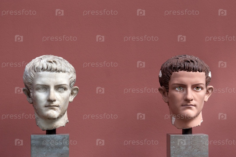 Сравнение оригинального белого мраморного бюста Октавиана Августа и его современной живописной копии