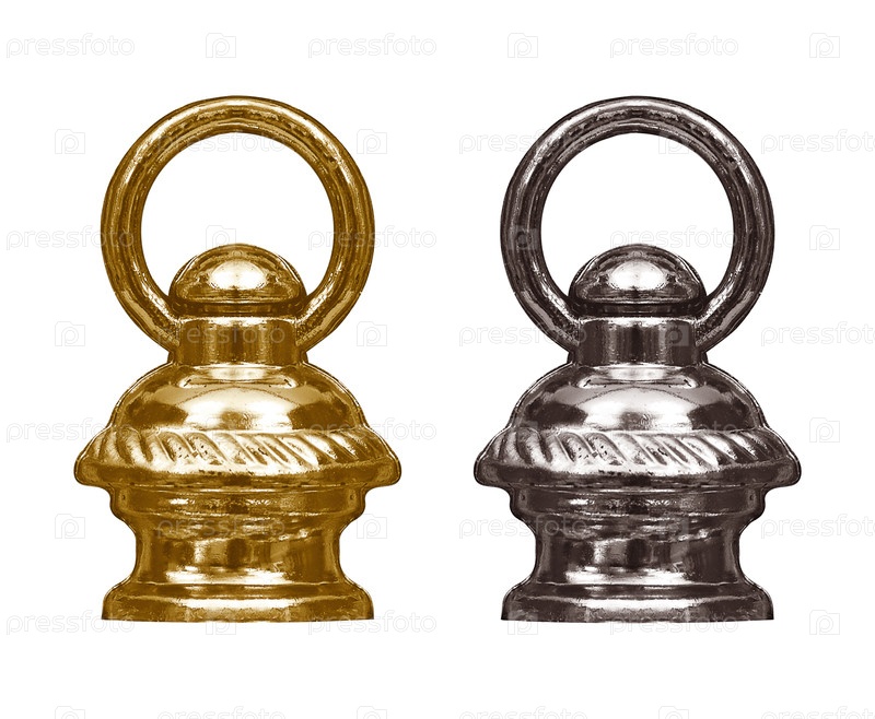 Золото-серебряная петля для соединения или подвешивания на белом фоне