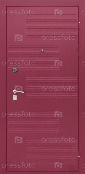 Модель входной металлической двери, изолированной на белом фоне