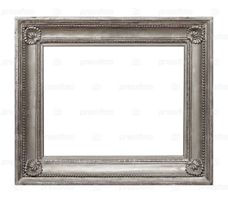 Серебряная рама для картин, зеркал или изолированной фотографии на белом фоне