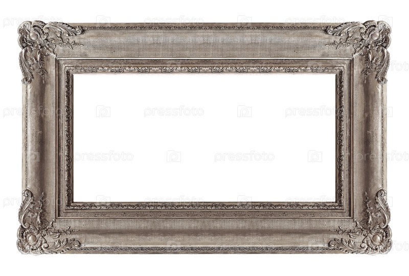 Панорамная серебряная рама для картин, зеркал или изолированной фотографии на белом фоне