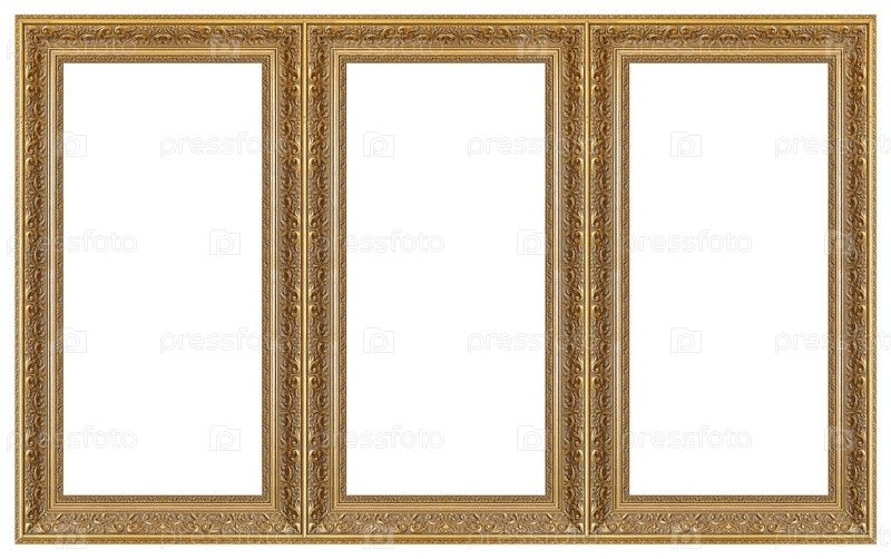 Панорамная золотая рама для картин, зеркал или изолированной фотографии на белом фоне