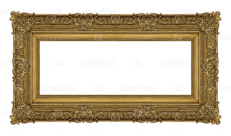 Панорамная золотая рама для картин, зеркал или изолированной фотографии на белом фоне