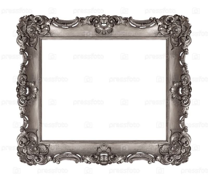 Серебряная рама для картин, зеркал или изолированной фотографии на белом фоне
