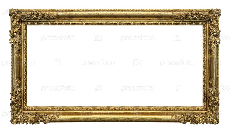 Панорамная золотая рама для картин, зеркал или изолированной фотографии на белом фоне