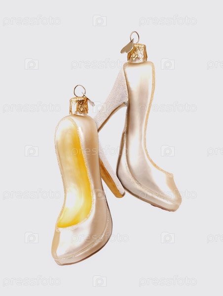 Рождественские игрушки в виде обуви с каблуками, изолированные на белом фоне