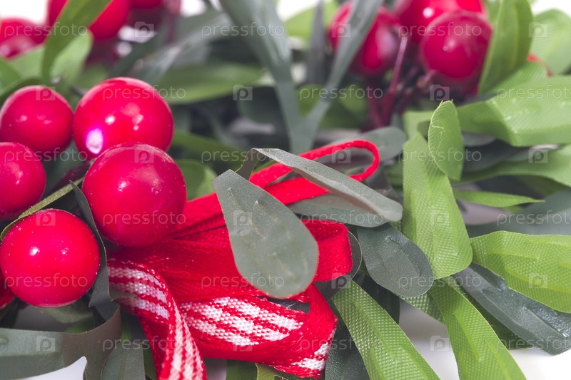 Зеленый рождественский венок изолирован на белом фоне (мокет фона)
