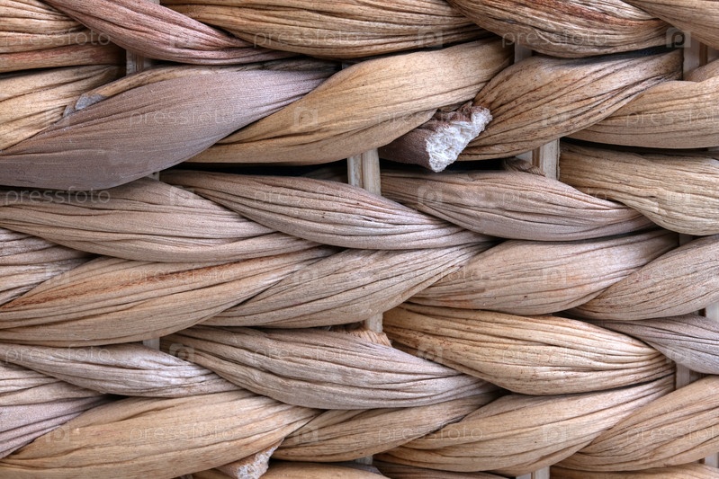 Ткань из натурального тростника или ротана на фоне текстуры, теплые бежевые и коричневые тона.Изолированный фон