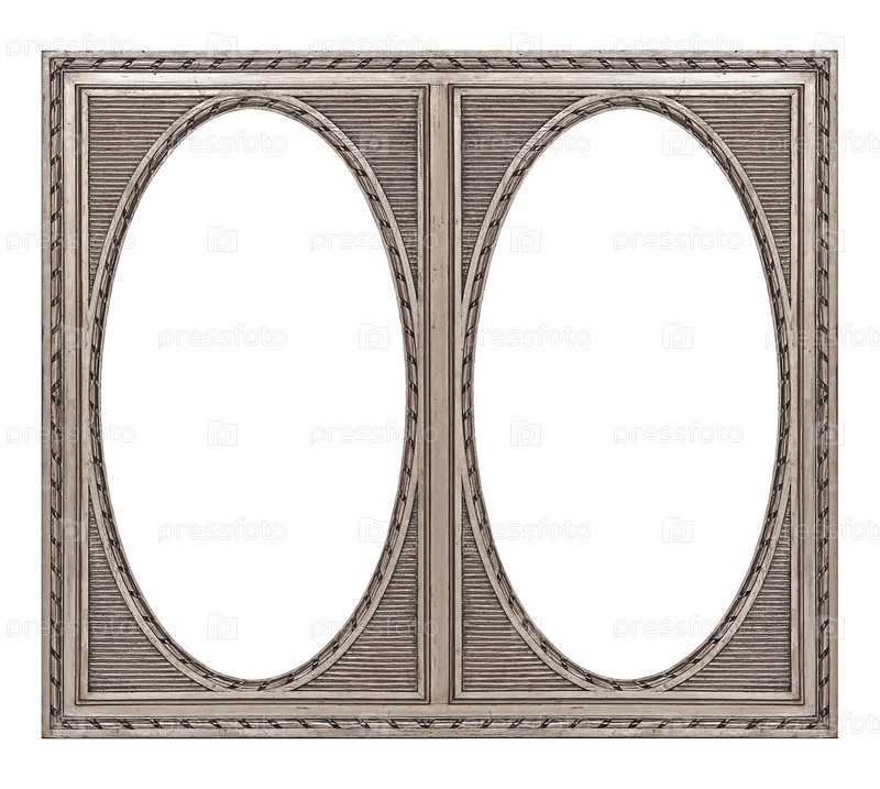 Двойная серебряная рама (диптих) для картин, зеркал или фотографий, изолированных на белом фоне