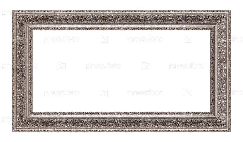 Панорамная серебряная рама для картин, зеркал или изолированной фотографии на белом фоне