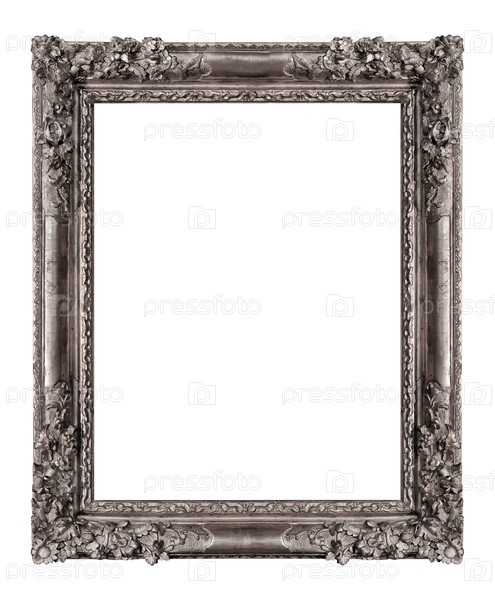 Серебряная рама для картин, зеркал или изолированной фотографии на белом фоне