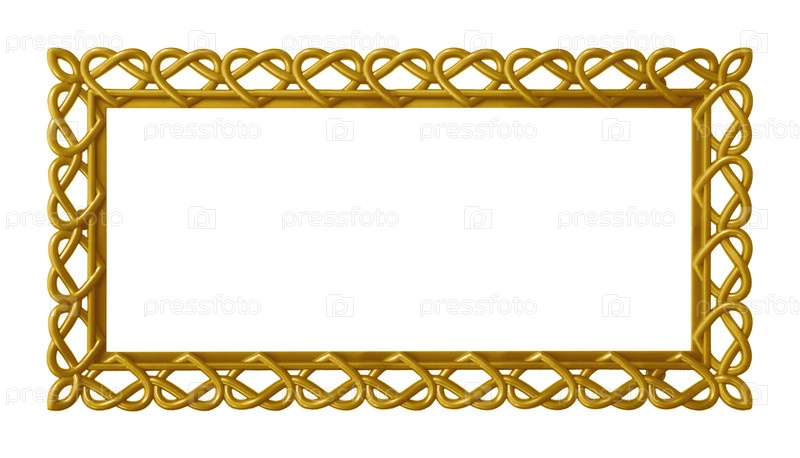 Панорамный золотой каркас сердца для картин, зеркал или фотографии изолированной на белом фоне