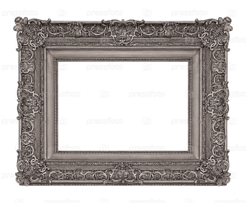 Серебряная рама для картин, зеркал или изолированной фотографии на белом фоне