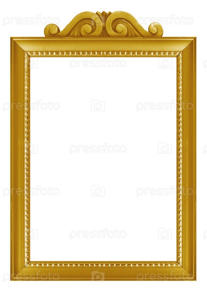 Золотая рама для картин, зеркал или фотографии изолированной на белом фоне