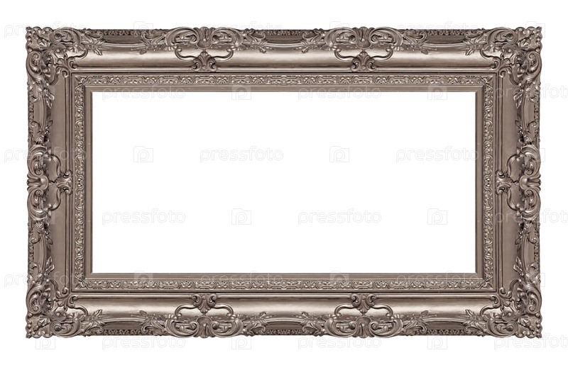 Панорамная серебряная рама для картин, зеркал или изолированной фотографии на белом фоне