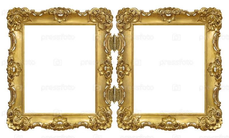Двойная золотая рама (диптих) для картин, зеркал или фотографий, изолированных на белом фоне