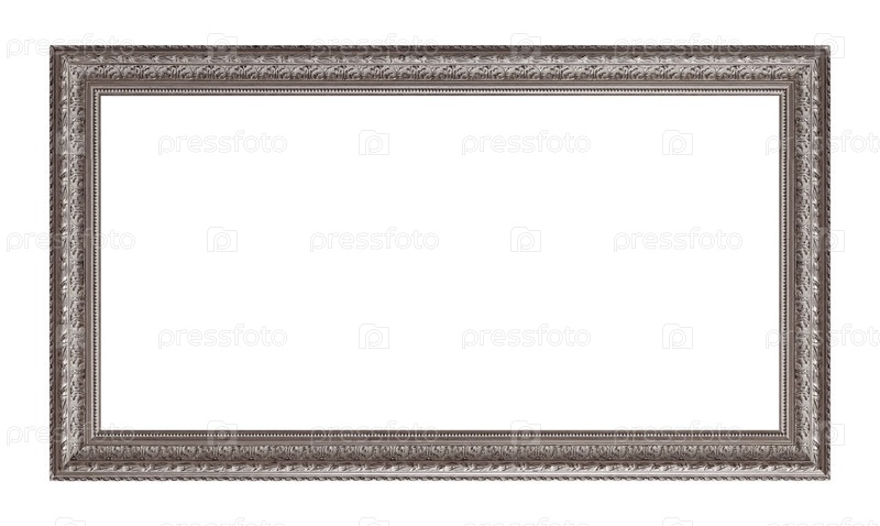 Панорамная серебряная рама для картин, зеркал или изолированной фотографии на белом фоне