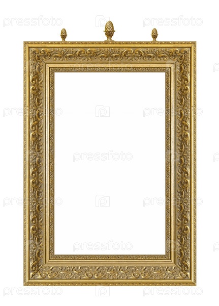 Золотая рама для картин, зеркал или фотографии изолированной на белом фоне
