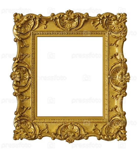 Золотая рама для картин, зеркал или изолированной фотографии на белом фоне