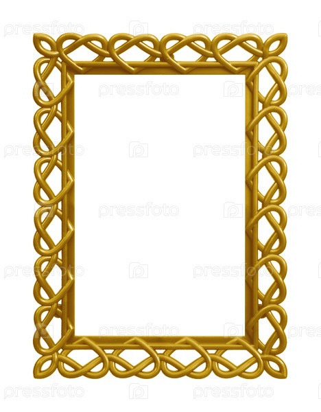 Золотая рамка сердца для картин, зеркал или фотографии изолированной на белом фоне