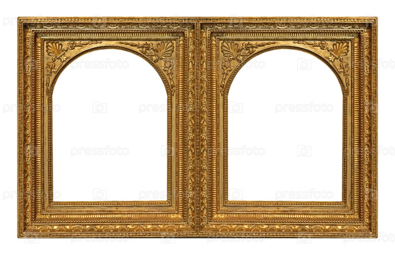 Двойная золотая рама (диптих) для картин, зеркал или фотографий, изолированных на белом фоне