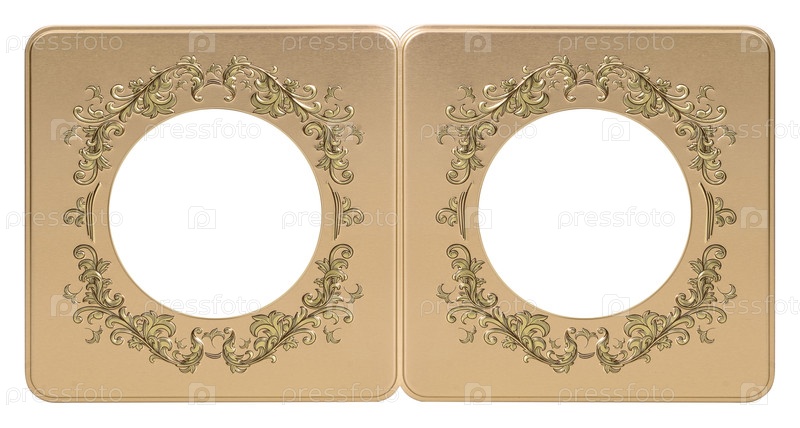 Двойная золотая рама (диптих) для картин, зеркал или фотографий, изолированных на белом фоне