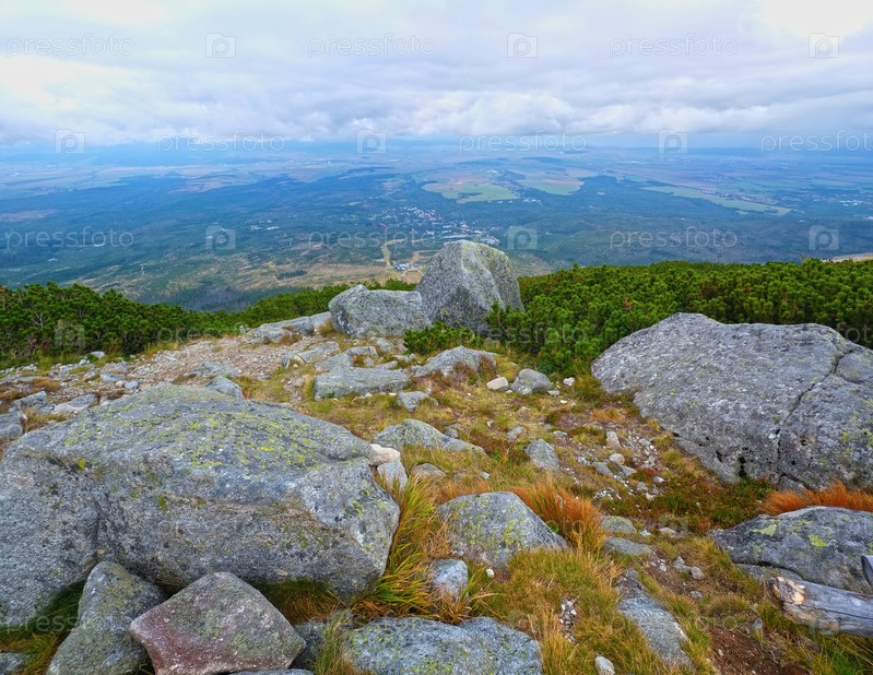 Вид с вершины Lomnicky Stit в сторону Tatranska Lomnica, Высокие Татры, Словакия