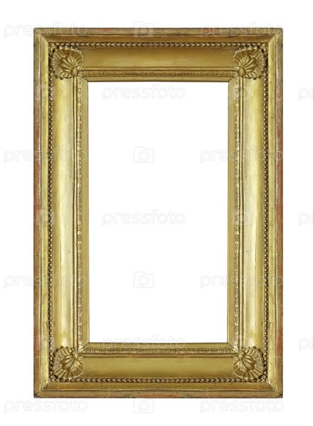 Золотая рама для картин, зеркал или изолированной фотографии на белом фоне