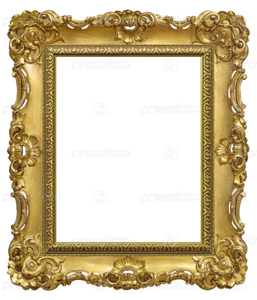 Золотая рама для картин, зеркал или изолированной фотографии на белом фоне