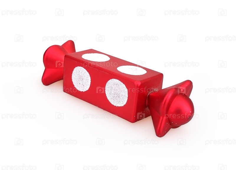 Рождественская игрушка "Красная конфета" изолирована на белом фоне