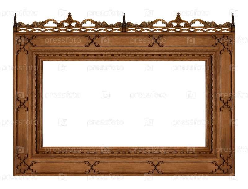 Деревянная готическая рама для картин, зеркал или фотографии изолированной на белом фоне