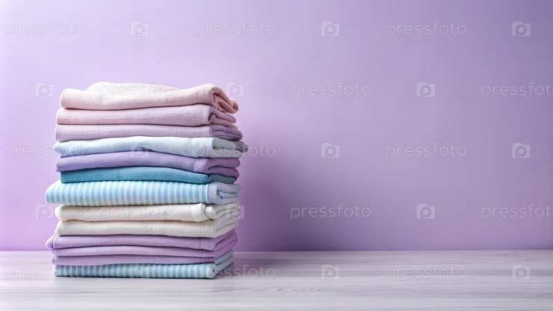Куча чистой одежды на лиловом фоне