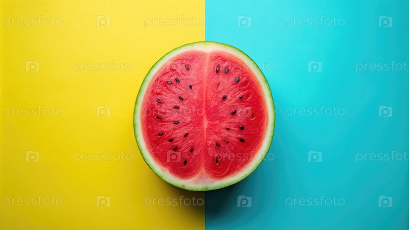 Один кусочек арбуза на желтом и синем фоне