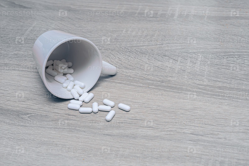 Таблетки, медикаменты, обезболивающие на деревянном столе