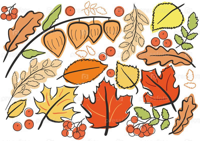 Осенние листья клена, дуба и рябины