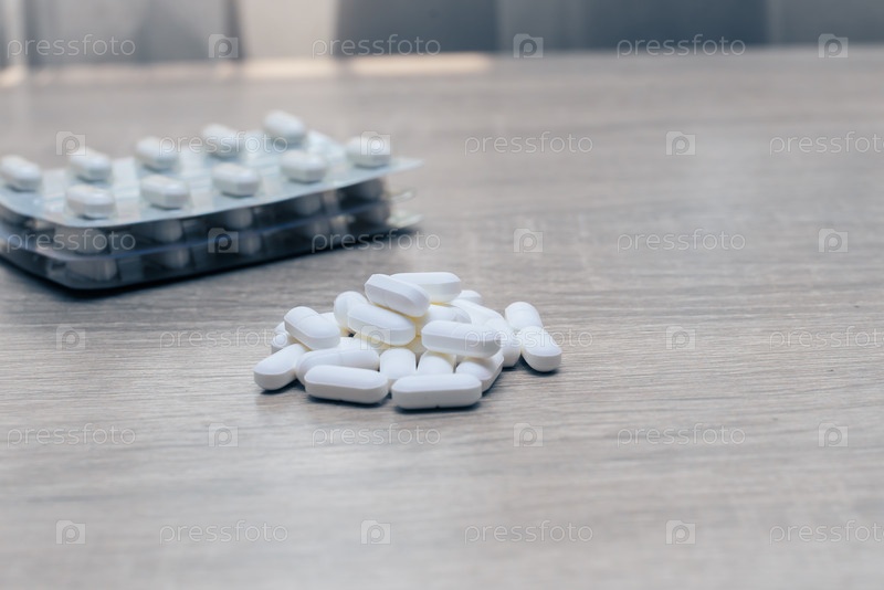 Таблетки, медикаменты, обезболивающие на деревянном столе