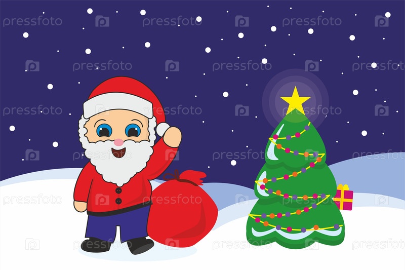 Снеговик, кролик и Санта-Клаус возле рождественской елки