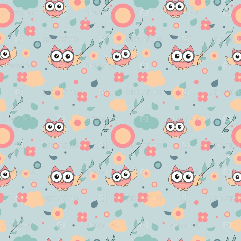 Бесшовный узор с весенними совами