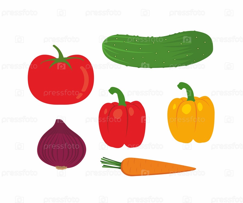 Свежие овощи. Огурец, помидор, перец, лук, морковь