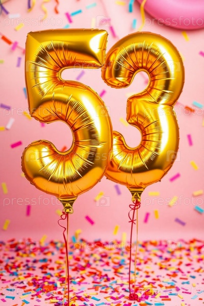 Гелий день рождения воздушный шар формы номер пятьдесят три, золотые буквы фигура 53 праздник праздничный фон декор