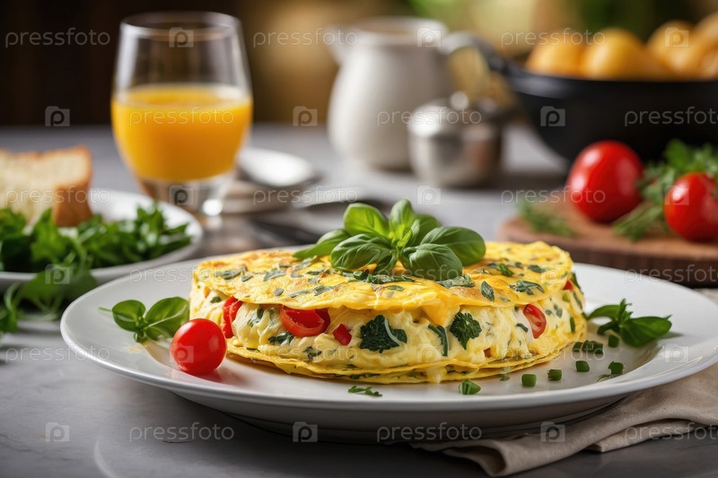 ИИ генеративные яйца омлет с овощами и зеленью, сердечная вкусная традиционная кулинарная бранч-кухня
