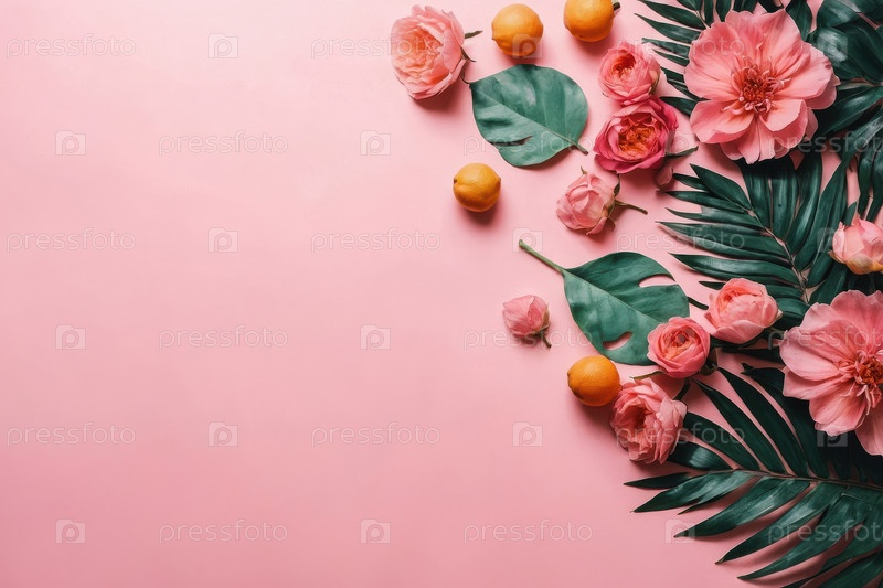 AI Generative Background copy space for text Летняя тропическая плоская кровать с аксессуарами Отдых на море