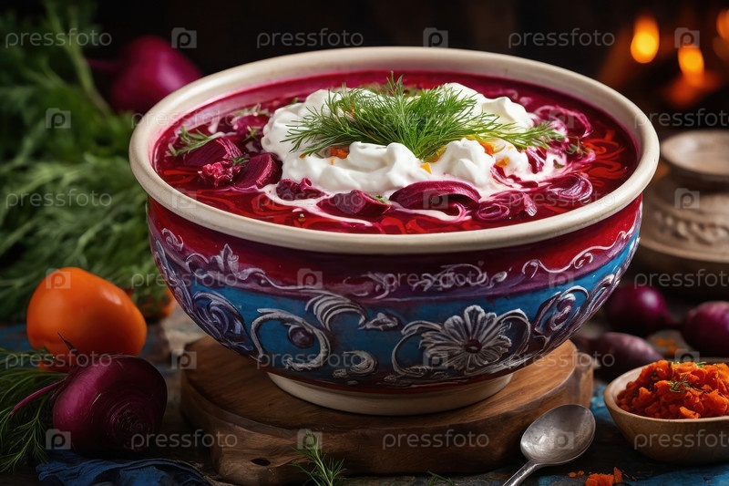 AI Generative Традиционный украинский борщ-суп в миске ужин обед, овощи вегетарианская кухня
