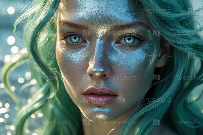 Фантастический портрет молодой красивой женщины Магическая модель, русалка в море из сказки AI Generative