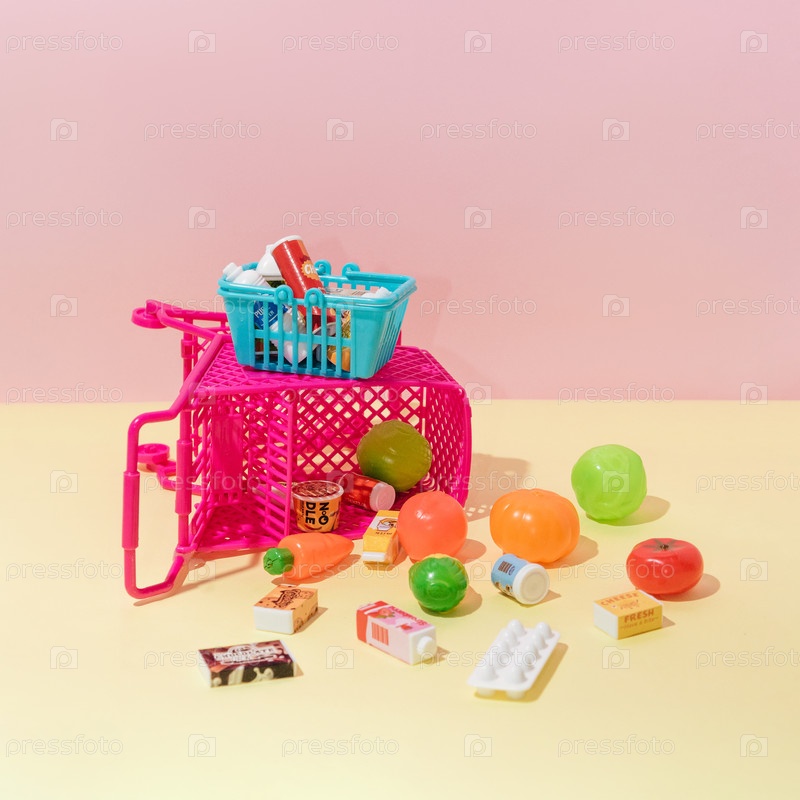 Покупательская корзина Торговая корзинка Продовольственная натюрморт Желтый Розовый Фон продуктовый творческий